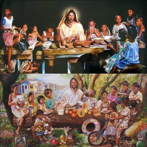 The story of those kids didn’t ended with that painting, it continued with one more master piece ,Joey not only hoped for a better future of those 12 kids but he actually created a better future for those slum kids. Three years later, in 2008, he successfully helped each kid with secured shelter at a Gawad Kalinga village for them. They all have a better life now. This inspired him to create “Table of Love,” another version of the Last Supper with Jesus Christ dining with the same 12 street children but this time these Kids are happy and smiling with their homes as the background.