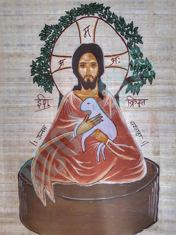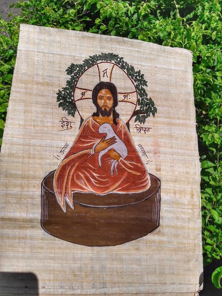 An indigenous Icon on Papyrus. An attempts in Indian Iconography. Done with traditional tempra technique on hand made papyrus sheet.
