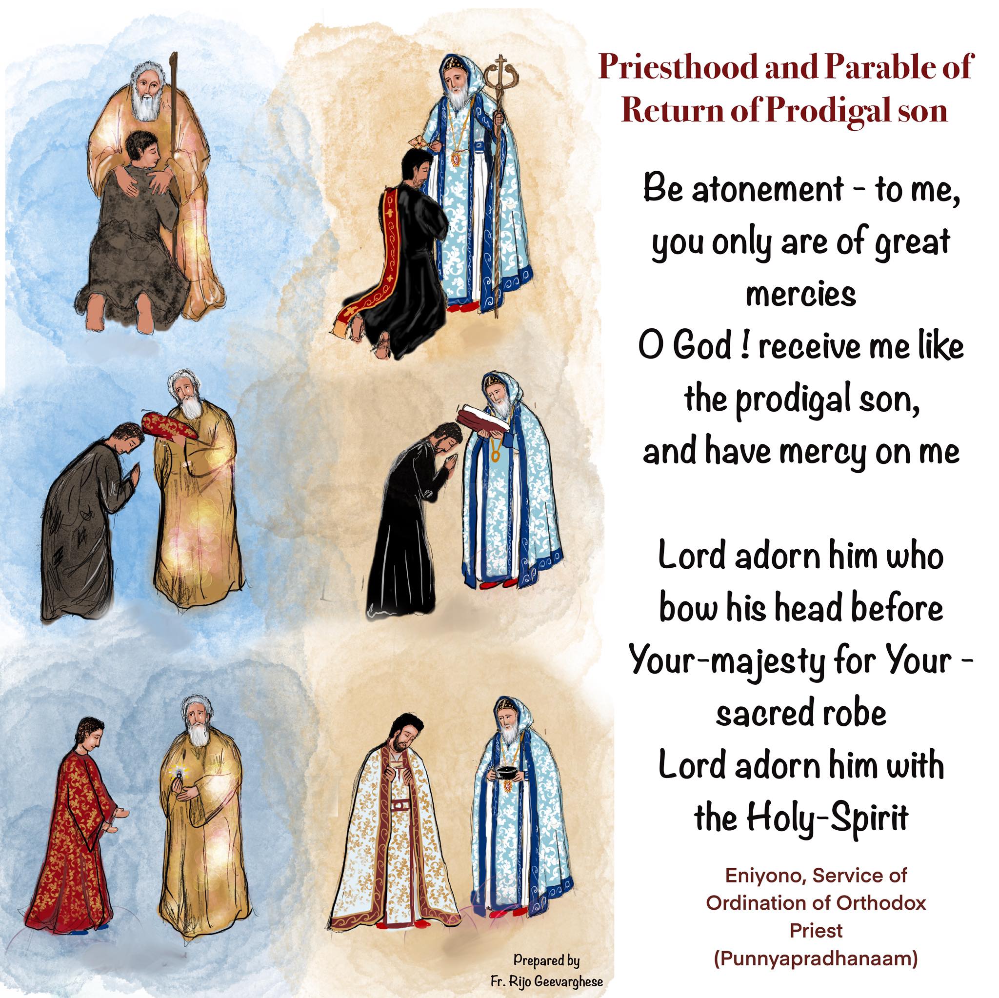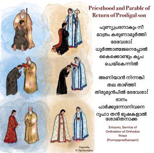 A contemplative illustration of Ordination and Return of the prodigal son. This illustration is based on the two stanza of Eniyono in the Service of Ordination.